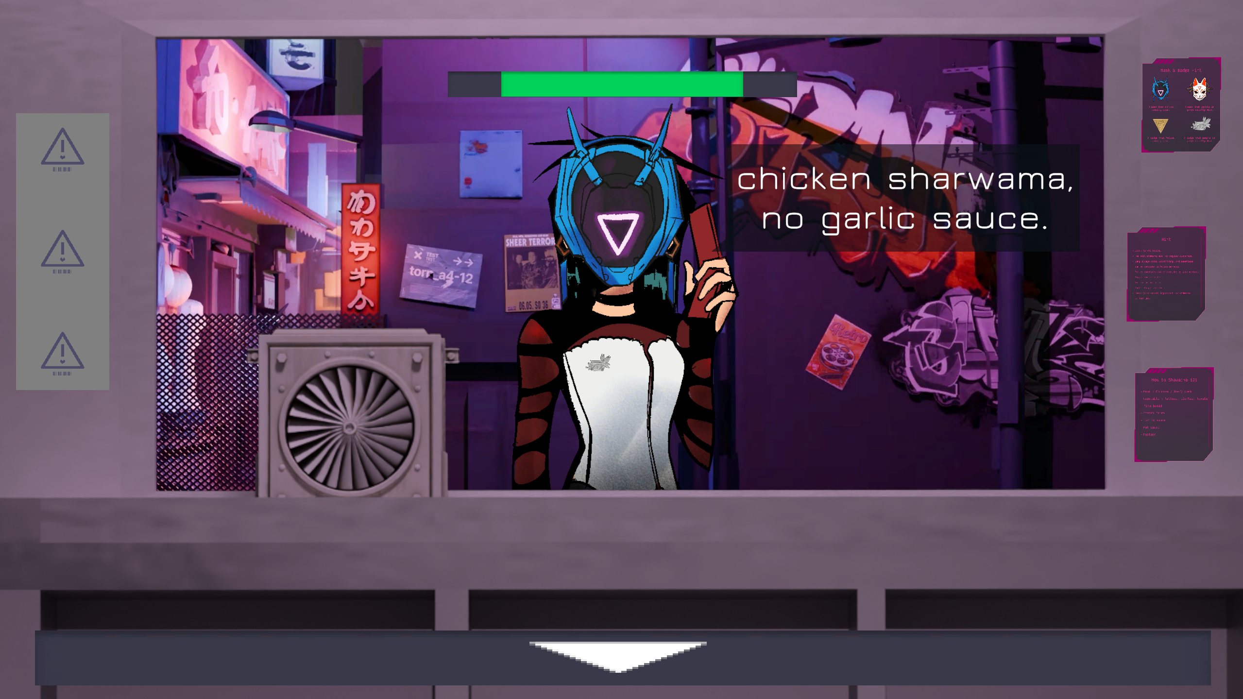 You have a financial crisis and risk to go bankrupt, so you use your last saving to open a food truck business by selling shawarma and the "special menu" in some hidden district, but beware that your so called "special menu" caught the police attention.